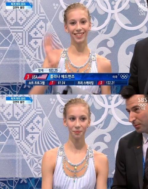 폴리나 에드먼즈는 21일(이하 한국시간) 새벽 러시아 소치의 아이스버그 스케이팅 팰리스에서 열린 2014 소치 동계올림픽 여자 싱글 피겨스케이팅 프리스케이팅서 122.21점을 얻어 전날 쇼트 프로그램 포함 183.25점을 마크했다.