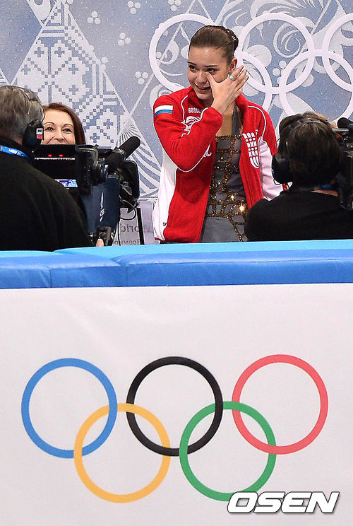 러시아 아델리나 소트니코바가 연기를 마치고 점수를 확인하며 눈물을 흘리고 있다. /soul1014@osen.co.kr