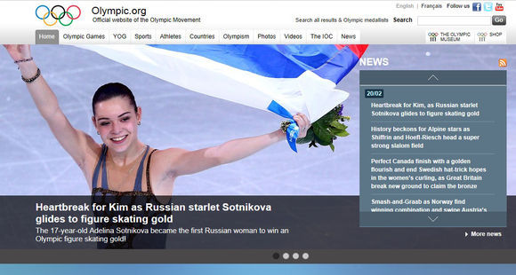 세계올림픽위원회(IOC) 공식홈페이지가 김연아(24, 올댓스포츠)의 은메달 획득소식을 톱으로 전했다.