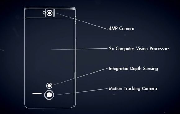 스마트폰에는 카메라와 모션 트랙킹 카메라, 3D센서와 프로세서가 장착돼 자동으로 주변에 대한 길 안내, 규모와 면적, 환경지도를 제공한다.