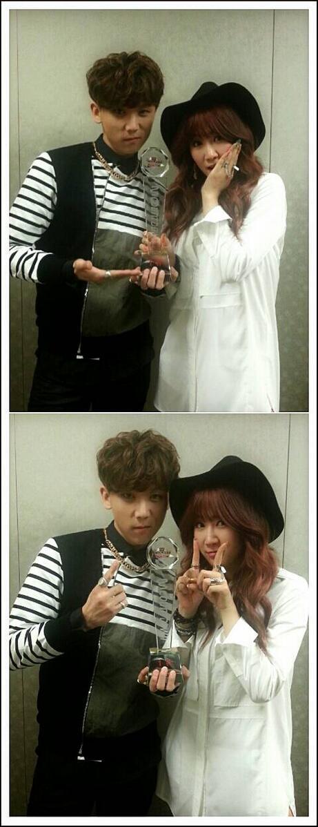 [OSEN=임승미 인턴기자] 걸그룹 씨스타의 소유와 가수 정기고가 케이블채널 엠넷 '엠카운트다운' 1위 트로피 인증샷을 공개했다.