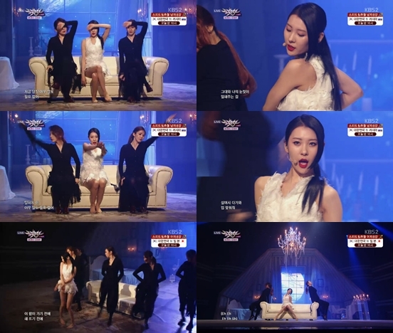 선미는 21일 오후 방송된 KBS 2TV 가요프로그램 ‘뮤직뱅크’에서 몽환적 분위기의 신곡 ‘보름달’을 열창하며 컴백 무대를 가졌다.