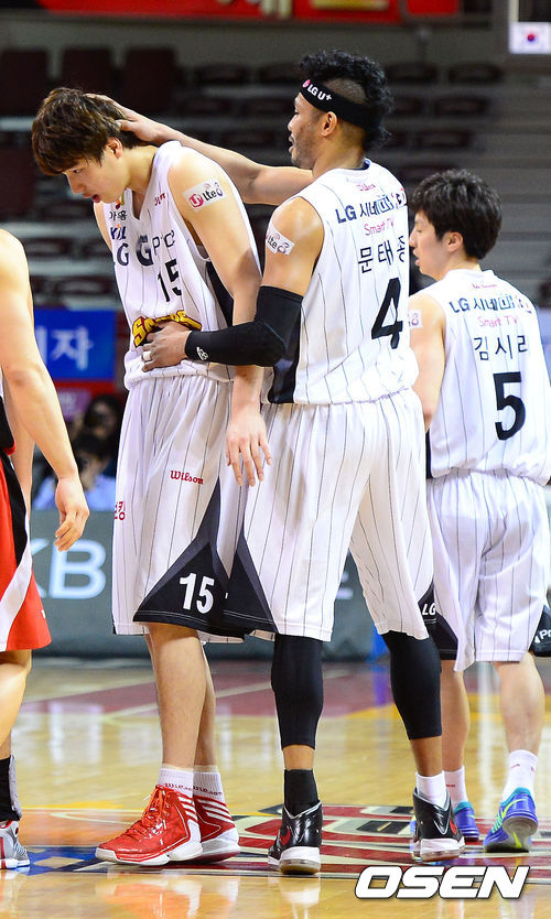 승리를 거둔 LG 문태종이 김종규를 칭찬하고 있다./youngrae@osen.co.kr