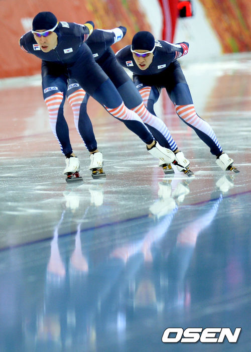 이승훈(26·대한항공), 주형준(23), 김철민(22·이상 한국체대)으로 구성된 스피드스케이팅 남자 팀 추월 대표팀은 21일(이하 한국시간) 러시아 소치의 아들레르 아레나서 열린 팀 추월 8강전 러시아와 경기서 3분40초84를 기록, 러시아(3분44초22)에 여유롭게 앞선 기록으로 결승선을 통과하며 준결승에 진출했다.