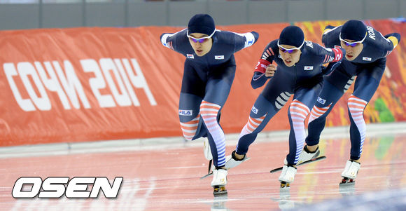 이승훈(26·대한항공), 주형준(23), 김철민(22·이상 한국체대)으로 구성된 스피드스케이팅 남자 팀 추월 대표팀은 21일(이하 한국시간) 러시아 소치의 아들레르 아레나서 열린 팀 추월 8강전 러시아와 경기서 3분40초84를 기록, 러시아(3분44초22)에 여유롭게 앞선 기록으로 결승선을 통과하며 준결승에 진출했다.