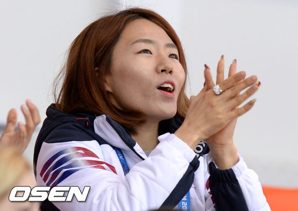 남자 팀추월 대표팀이 러시아를 꺾고 준결승에 진출하자 이상화가 박수를 치며 기뻐하고 있다. /soul1014@osen.co.kr