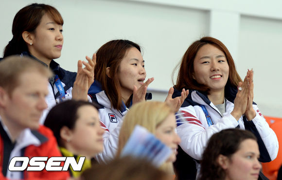 남자 팀추월 대표팀이 러시아를 꺾고 준결승에 진출하자 이상화가 박수를 치며 기뻐하고 있다. /soul1014@osen.co.kr