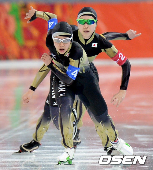 일본 여자 팀 추월 대표팀이 역주를 펼치고 있다. /soul1014@osen.co.kr