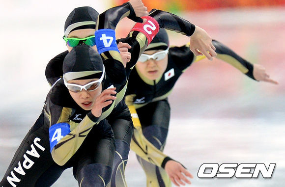 일본 여자 팀 추월 대표팀이 역주를 펼치고 있다. /soul1014@osen.co.kr