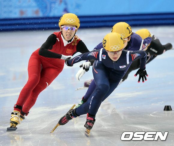 중국의 판커신이 앞서나가는 박승희를 뒤에서 잡아채고 있다./ soul1014@osen.co.kr