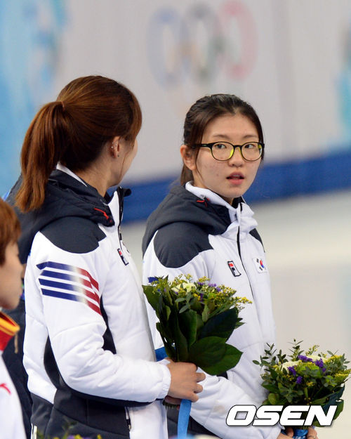 박승희가 플라워 세레모니를 하며 심석희와 얘기를 나누고 있다./ soul1014@osen.co.kr