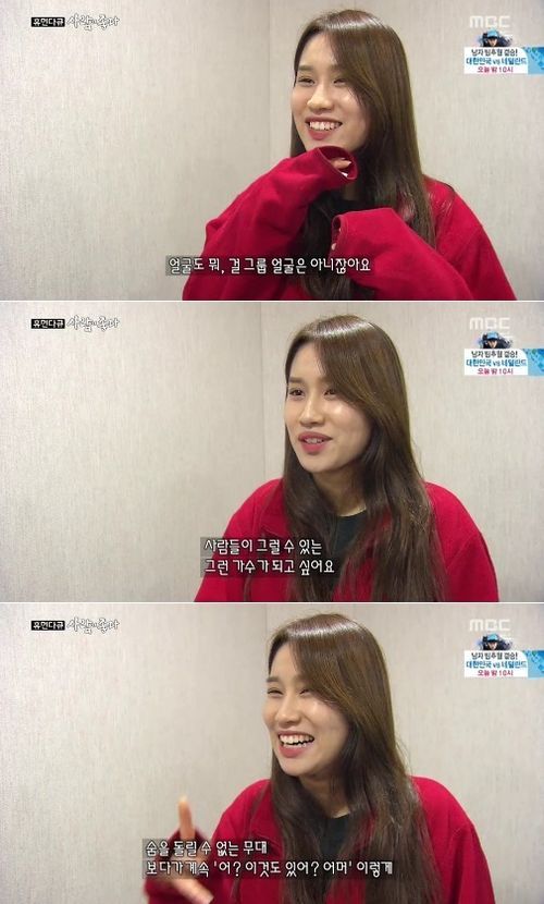 박수진은 22일 방송된 MBC 교양 프로그램 '휴먼다큐 사람이 좋다'에 출연해 "내 꿈은 디바다. 세계 최고의 디바"라며 "어차피 걸그룹 얼굴도 아니지 않냐"고 말하며 환하게 웃었다.