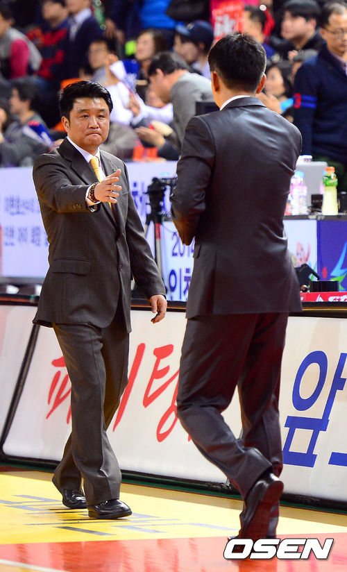 승리를 거둔 전자랜드 유도훈 감독과 삼성 김상식 감독대행이 악수를 나누고 있다./youngrae@osen.co.kr