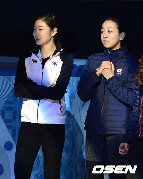 김연아, 아사다 마오가 리허설을 하고 있다.