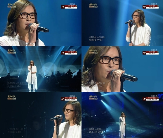 김종서는 22일 오후 방송된 KBS 2TV 예능프로그램 '불후의 명곡-전설을 노래하다'에서 마지막 무대에 올라 정미조의 ‘휘파람을 부세요’를 열창했다.