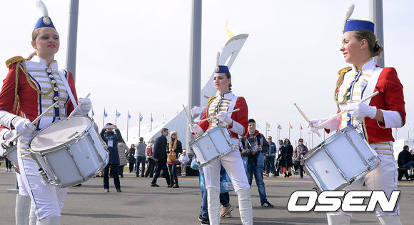 22일(한국시간) 러시아 소치 해안클러스터 올림픽 파크에서 군악대 공연이 펼쳐지고 있다.
