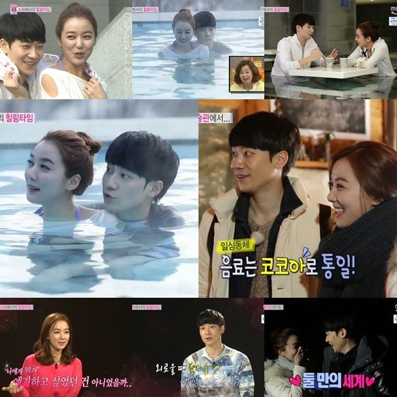 이어 야외에서 온천을 즐기러 나온 두 사람은 추운 날씨에 꼭 붙어 있었다. 윤한은 이소연에게 춥다면서 팔짱을 껴달라고 했고 이소연은 팔짱을 끼는 등 자연스럽고 더욱 가까워진 스킨십으로 두 사람이 얼마나 서로에게 익숙해졌는지 확인할 수 있었다.
