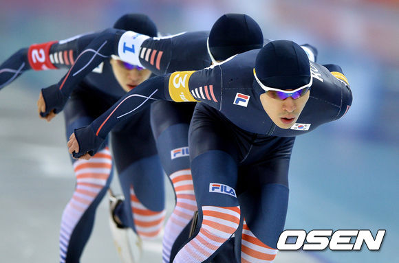 이승훈(26, 대한항공), 주형준(23), 김철민(22, 이상 한국체대)으로 구성된 스피드스케이팅 남자 팀 추월 대표팀(세계랭킹 2위)은 23일(이하 한국시간) 러시아 소치의 아들레르 아레나서 열린 팀 추월 결승 네덜란드(세계랭킹 1위)와 경기서 3분40초85로 결승선을 통과, 네덜란드에 패하고도 은메달을 획득했다. 네덜란드는 3분37초71로 올림픽 기록을 경신하며 금메달을 목에 걸었다.