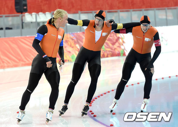 이승훈(26, 대한항공), 주형준(23), 김철민(22, 이상 한국체대)으로 구성된 스피드스케이팅 남자 팀 추월 대표팀(세계랭킹 2위)은 23일(이하 한국시간) 러시아 소치의 아들레르 아레나서 열린 팀 추월 결승 네덜란드(세계랭킹 1위)와 경기서 3분40초85로 결승선을 통과, 네덜란드에 패하고도 은메달을 획득했다. 네덜란드는 3분37초71로 올림픽 기록을 경신하며 금메달을 목에 걸었다.