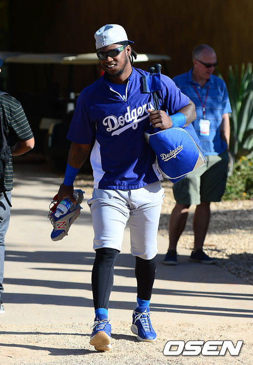 다저스 헨리 라미레즈가 훈련장으로 이동하고 있다.