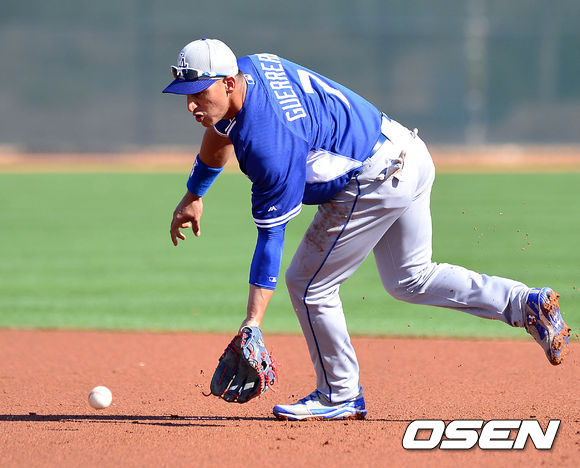 다저스 알렉산더 게레로가 수비 훈련을 하고 있다.