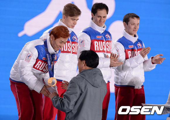 2014 소치동계올림픽 쇼트트랙 남자 5000m 계주 시상식이 23일(이하 한국시간) 러시아 소치의 메달프라자에서 열렸다.