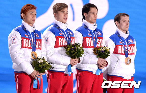 2014 소치동계올림픽 쇼트트랙 남자 5000m 계주 시상식이 23일(이하 한국시간) 러시아 소치의 메달프라자에서 열렸다.