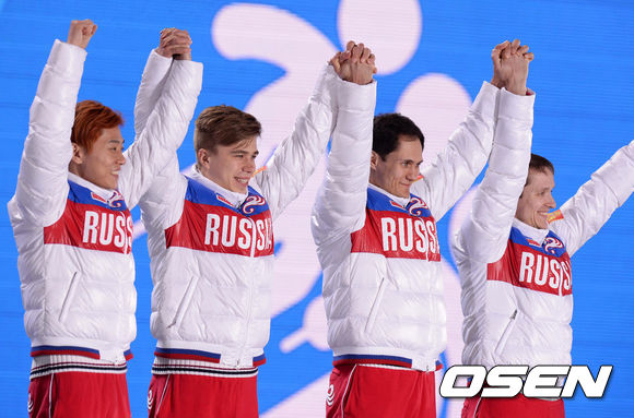 2014 소치동계올림픽 쇼트트랙 남자 5000m 계주 시상식이 23일(이하 한국시간) 러시아 소치의 메달프라자에서 열렸다.