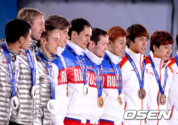 2014 소치동계올림픽 쇼트트랙 남자 5000m 계주 시상식이 23일(이하 한국시간) 러시아 소치의 메달프라자에서 열렸다.