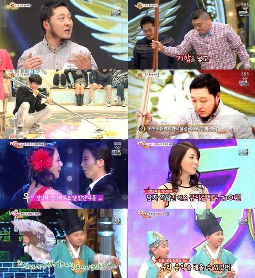 지난 22일 오후 방송된 SBS 예능프로그램 '놀라운 대회 스타킹'에서는 배뱅이 굿 신동 김민호-김윤호 형제와 초대형 젓가락으로 식사를 하는 중국인 짜우원치, 두 목소리의 뮤지컬 배우 게이코 등이 출연해 놀라운 장기를 선보였다.