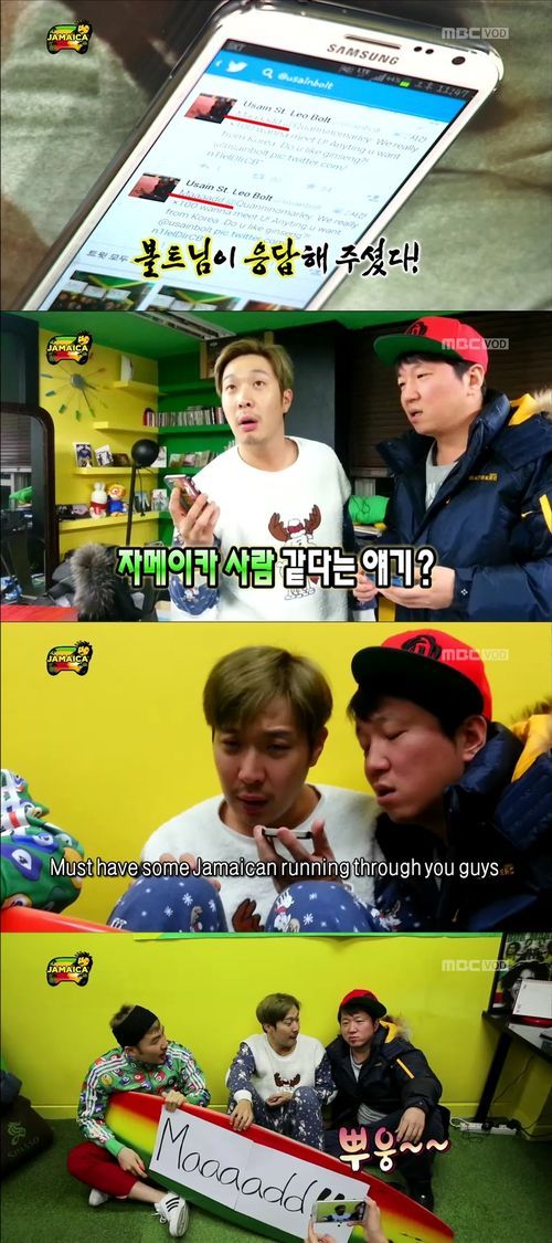 이날 정형돈, 하하, 노홍철과 게스트 스컬은 다소 우스꽝스러운 표정이 담긴 사진을 올리며 우사인 볼트와 만나고 싶다고 글을 올렸다. 3시간 후 우사인 볼트는 답장을 남겼다. 미쳤다는 재치 넘치는 답장을 받은 하하는 이미 촬영이 끝난 제작진과 멤버들을 호출해 추가 촬영을 했다. 이후 또 한번의 답장을 받은 하하와 제작진은 제대로 된 카메라 없이 휴대폰 카메라로 화면을 담으면서까지 우사인 볼트의 답장을 방송했다.