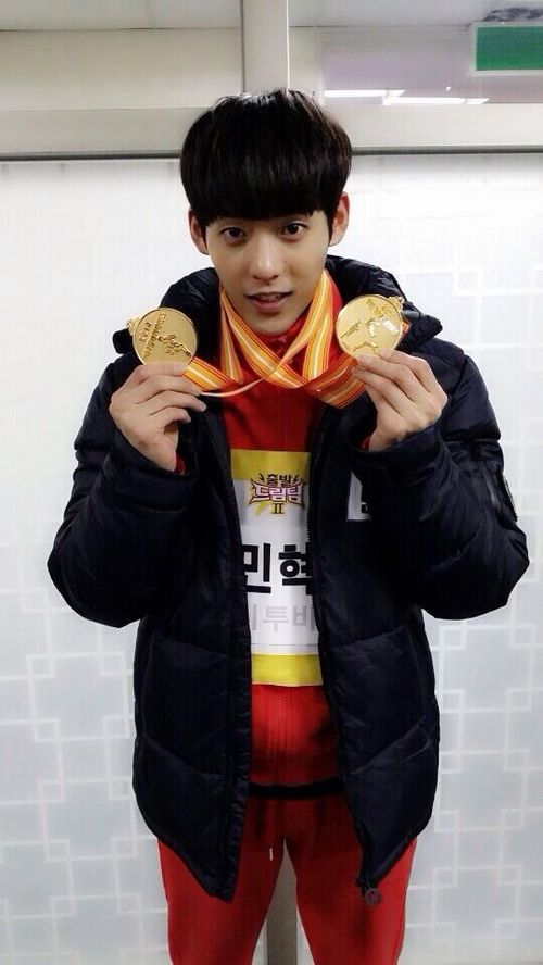 민혁은 23일 자신의 트위터에 “드림팀 재밌게 봤어요? 지난 철인왕전 금메달까지 받아서 인증샷”이라는 글과 함께 금메달을 하고 있는 사진을 올렸다.