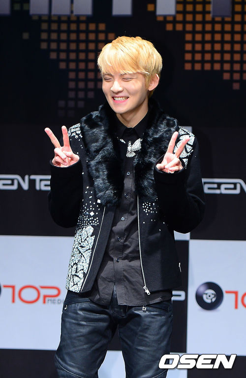콘서트에 앞서 진행된 기자회견에서 틴탑 리키가 포토타임을 갖고 있다.