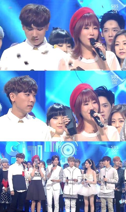 소유X정기고는 23일 오후 방송된 SBS '인기가요'에서 인기곡 '썸'으로 방탄소년단, SM더발라드를 꺾고 1위를 차지했다.