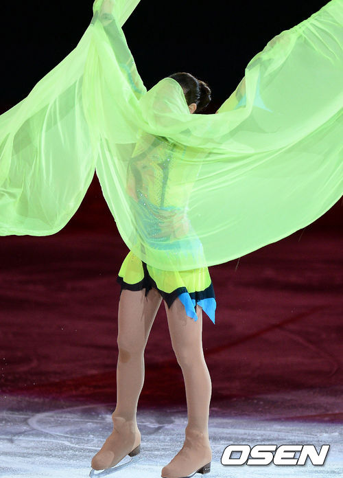 소트니코바는 23일(이하 한국시간) 러시아 소치의 아이스버그 스케이팅 팰리스에서 열린 피겨스케이팅 갈라쇼에 참가, 25번째로 연기를 펼쳤다. 김연아의 프리스케이팅곡 '아디오스 노니노'를 작곡한 아스트로 피아졸라의 명곡 '오블리비언 탱고'에 맞춰 형광색 깃발을 들고 나선 소트니코바는 색다른 갈라쇼 무대를 선보였고, 경기 때와 같이 러시아 관중들의 열렬한 환호를 받았다.