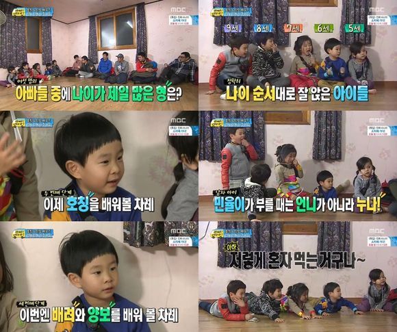 23일 오후 방송된 MBC 예능프로그램 '일밤-아빠 어디가(이하 '아빠어디가')'에서는 서로에 대한 호칭과 양보하는 방법을 배우는 아이들의 모습이 전파를 탔다.