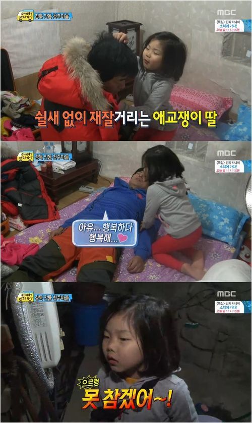 평소 남자 아이 같은 적극적인 성격을 보이는 이 꼬마는 아빠에 대한 애정을 안마로 표현한 것. 여기에 아빠와 단 둘이 있을 때 애교도 부리고 먼저 뽀뽀를 하는 등의 모습을 보여주며 시청자들을 흐뭇하게 하고 있다.