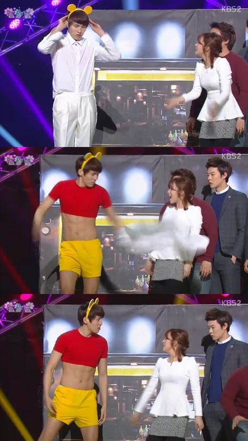 또 안소미의 "꿀물이 먹고 싶다"는 말에 류근지는 어깨에 항아리를 이고 등장, 명품 복근이 드러나는 곰돌이 푸 복장을 선보여 좌중을 폭소케 했다.
