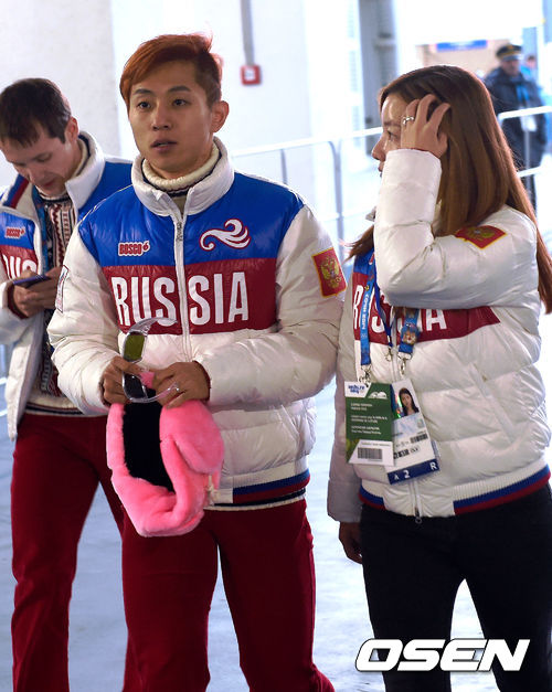 러시아 안현수, 우나리 부부가 폐막식에 참석하고 있다.
