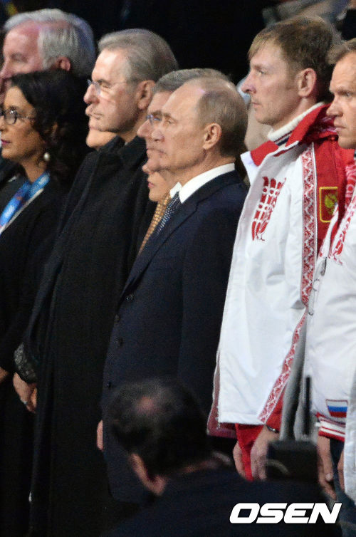 러시아 푸틴 대통령이 참석해 국기 게양을 바라보고 있다.
