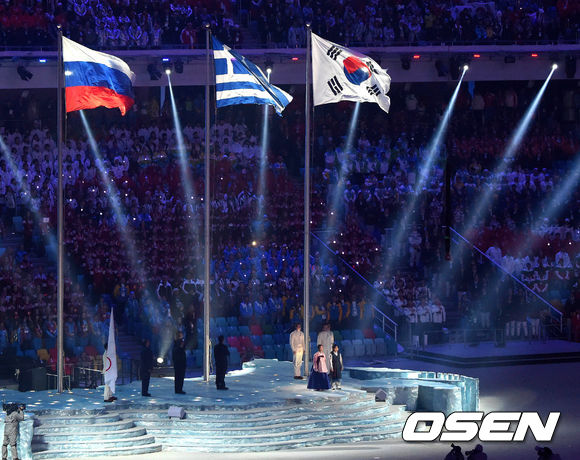 올림픽기 이양식을 하며 애국가가 울려 퍼지고 있다./soul1014@osen.co.kr