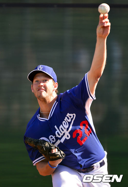 다저스 클레이튼 커쇼가 불펜 투구를 하고 있다.