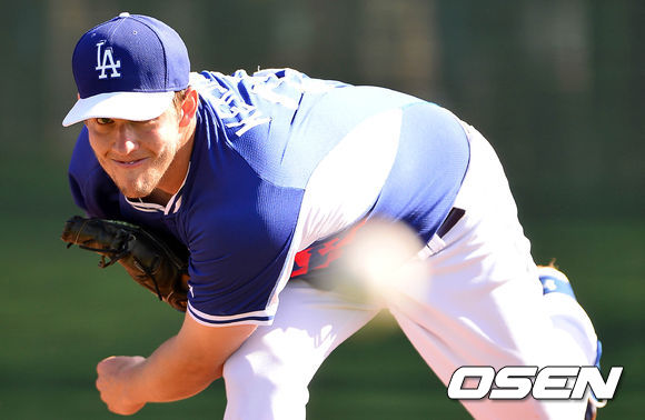 다저스 클레이튼 커쇼가 불펜 투구를 하고 있다.
