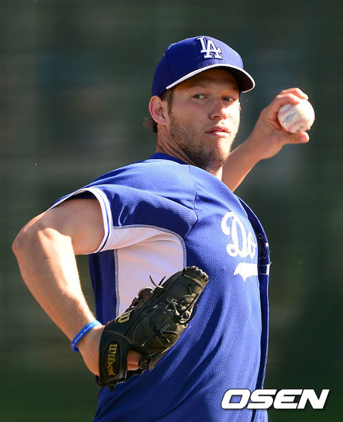 다저스 클레이튼 커쇼가 불펜 투구를 하고 있다.