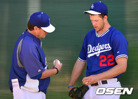 커쇼,'코치님 제 그립 좀 봐주세요'