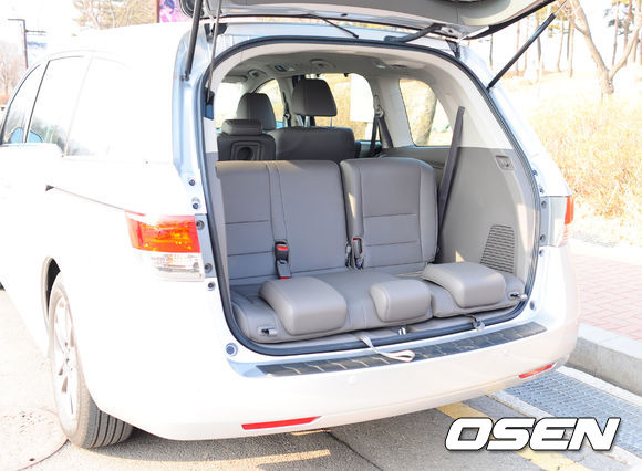 다인승 미니밴은 좌석도 좌석이지만 짐칸도 중요하다. 사람이 많이 타게 되면 그만큼 짐도 많기 마련이다. 올뉴 오딧세이는 3열 뒤쪽 차 바닥을 밑으로 깊게 파서 충분한 트렁크 공간을 확보해 했다. 평소에는 짐을 실을 수 있고 필요에 따라 3열 시트를 바닥 아래로 접어 넣은 공간 구실을 한다. 올뉴 오딧세이가 자랑하는 원-모션 폴딩 3열 매직 시트 기능이다.