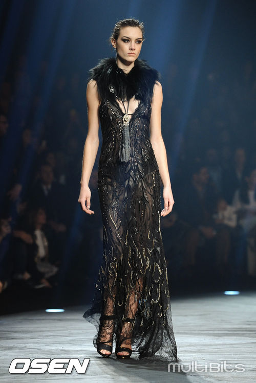 [OSEN/WENN 특약] 22일(현지시간) 이탈리아 밀라노에서 열린 '밀라노 패션위크 A/W 2014-로베르토 카발리'런웨이에서 한 모델이 캣 워크를 하고 있다.