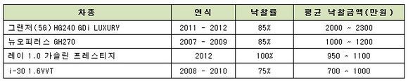 현대글로비스 오토옥션의 경기도 분당•시화, 경남 양산 등 총 3곳의 중고차경매장에 집계된 차량이다.