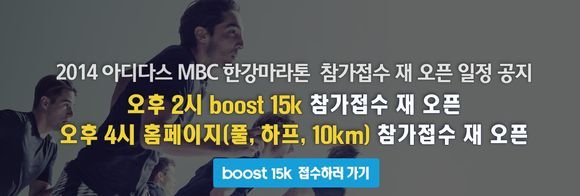 현재는(오후 2시 기준) Boost 15k 참가신청이 가능한 상태다. 오후 4시에는 풀, 하프, 10㎞ 코스(홈페이지) 참가 접수를 재 오픈한다.