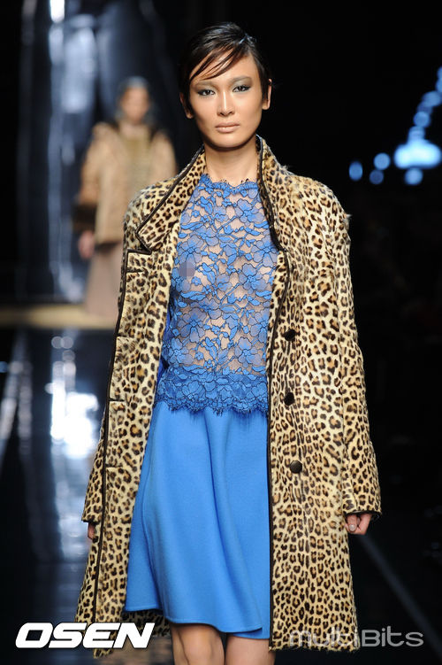 [OSEN/WENN 특약] 22일(현지시간) 이탈리아 밀라노에서 열린 '밀라노 패션위크 A/W 2014-에르마노 설비노'런웨이에서 한 모델이 캣 워크를 하고 있다.